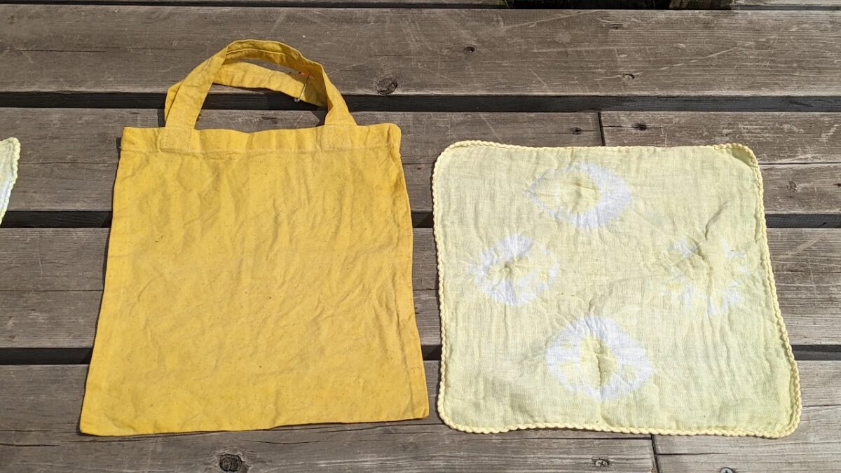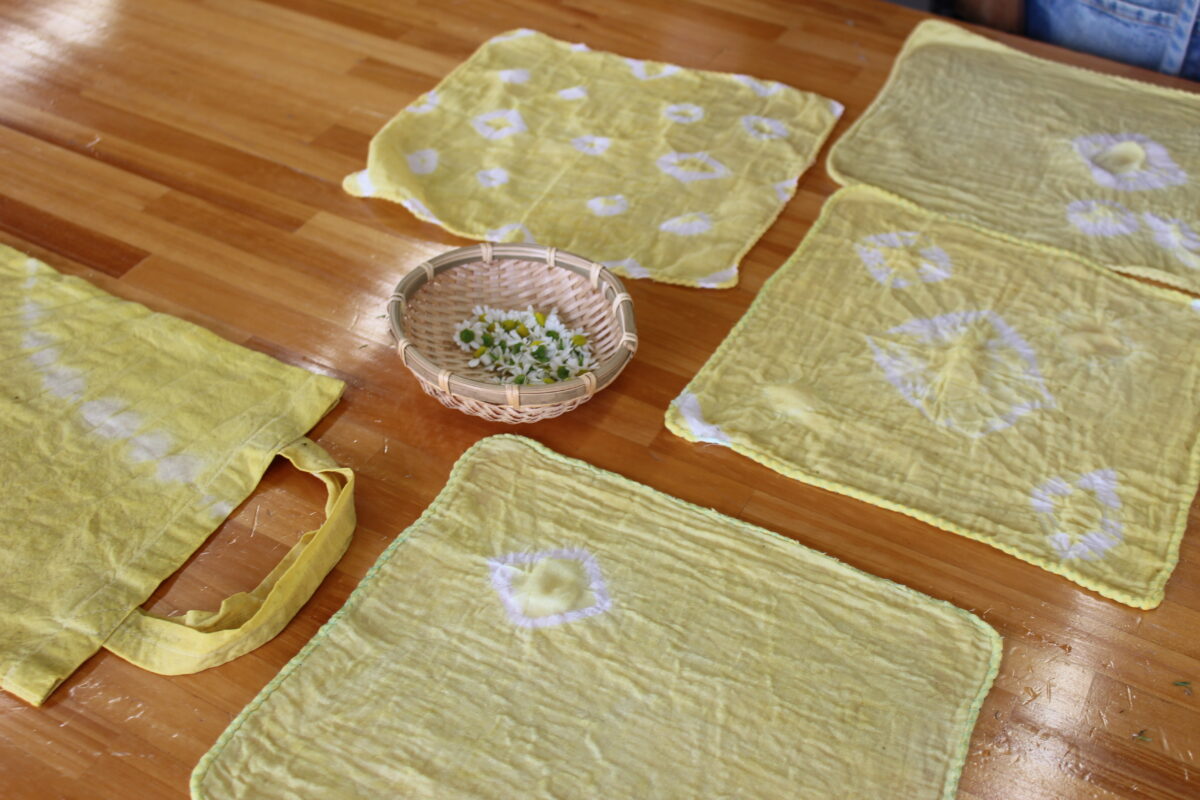 春の訪れを感じる心地よい空間の中で、新しい村育ちのカモミールを使ってコットントートバッグを染めましょう♪